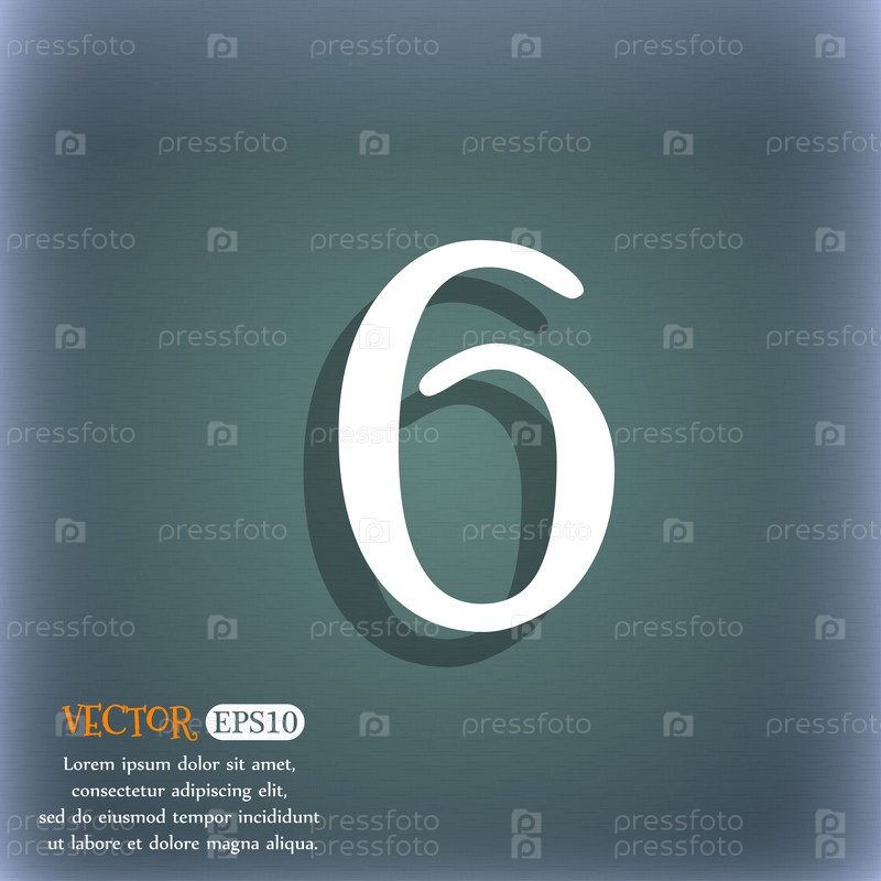 Номер шесть значок знак. На сине зеленый абстрактный фон с тенью и пространства для вашего текста. Вектор
