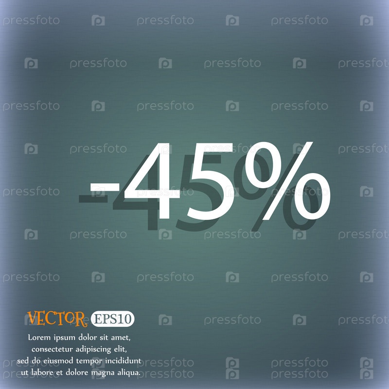 Скидка 45% знак значок. Продажа символ. Специальное предложение метка. На сине зеленый абстрактный фон с тенью и пространства для вашего текста. Вектор