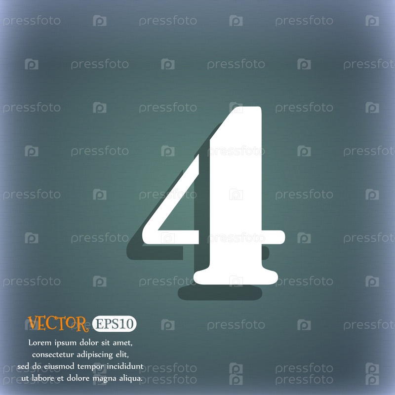 Номер четыре значок знак. На сине зеленый абстрактный фон с тенью и пространства для вашего текста. Вектор