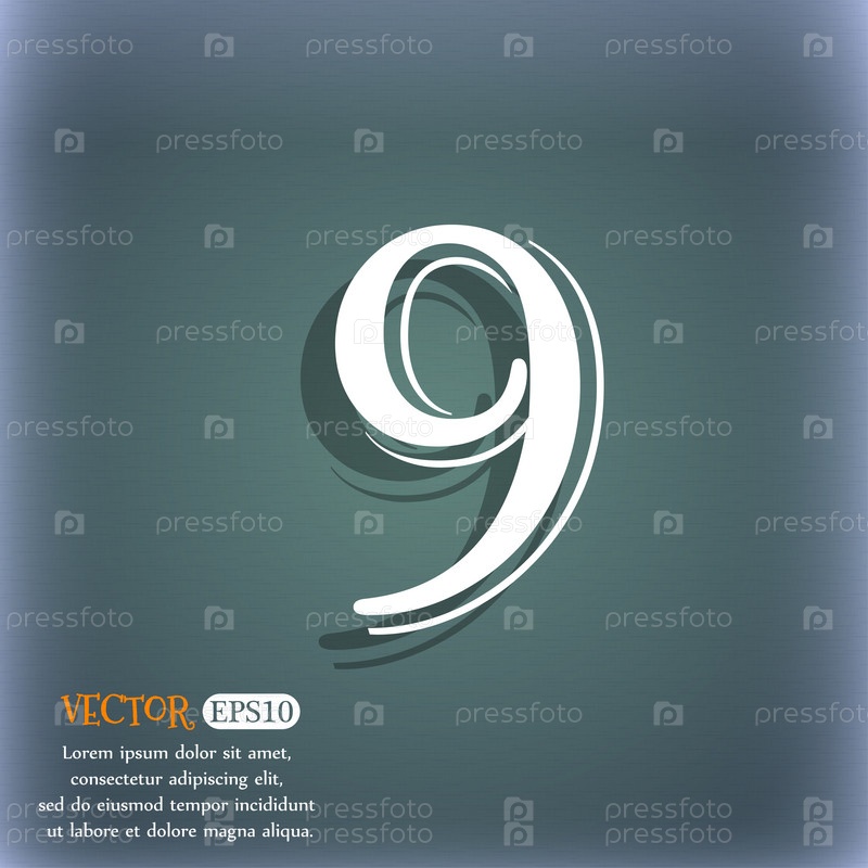 Номер девять значок знак. На сине зеленый абстрактный фон с тенью и пространства для вашего текста. Вектор