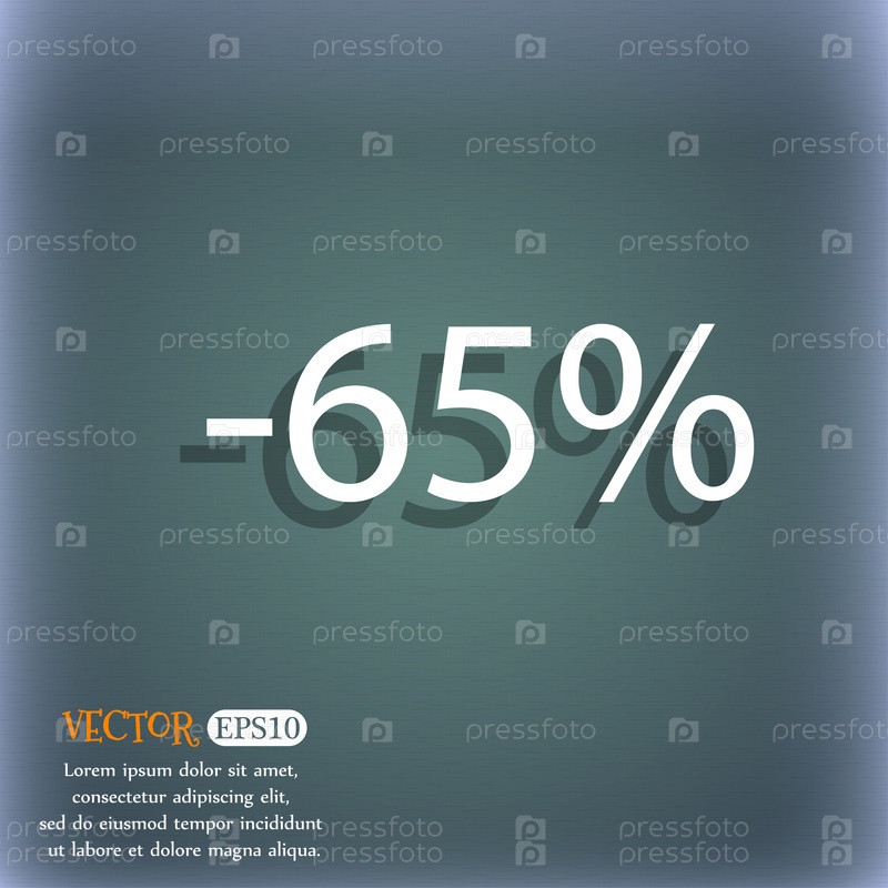 65% скидка знак значок. Продажа символ. Специальное предложение метка. На сине зеленый абстрактный фон с тенью и пространства для вашего текста. Вектор