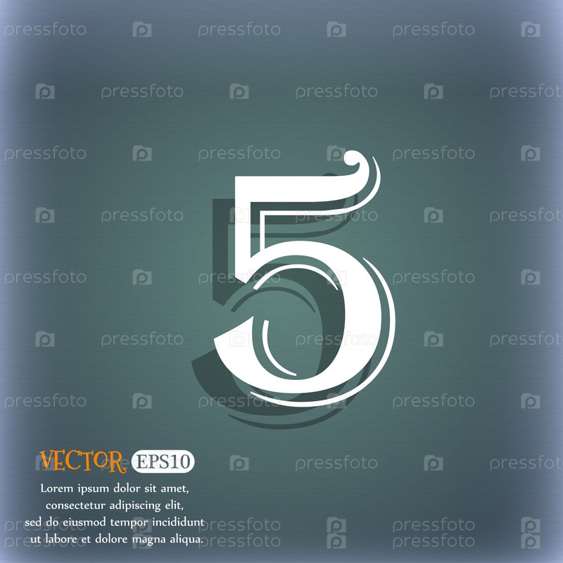 Номер пять значок знак. На сине зеленый абстрактный фон с тенью и пространства для вашего текста. Вектор