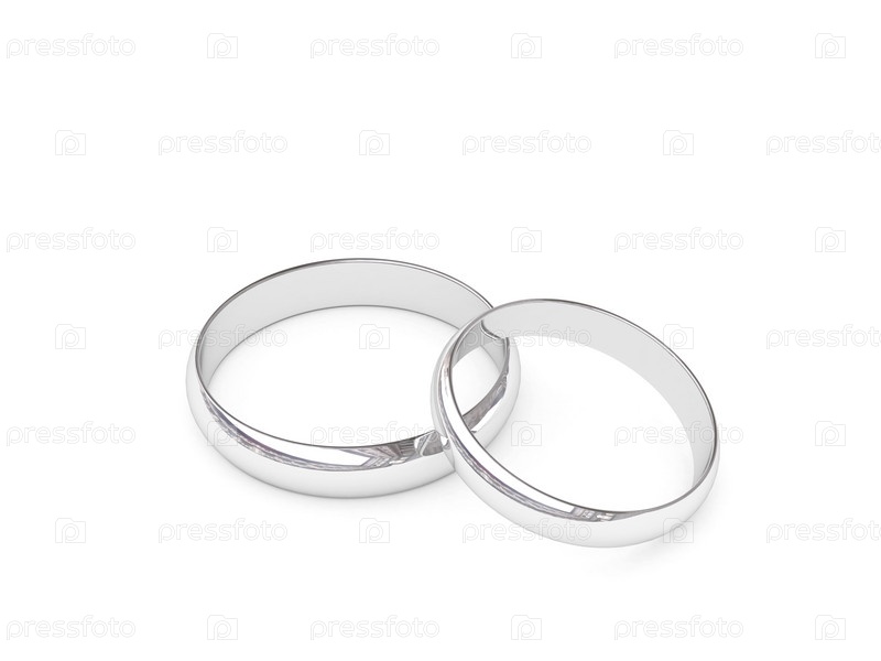 Платиновые или серебряные обручальные кольца на белом фоне. 3D изображение высокого разрешения