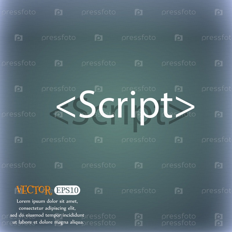 Сценарий входа значков. Символ кода JavaScript. Синий зеленый абстрактный фон с тенью и пробелом для вашего текста. Вектор