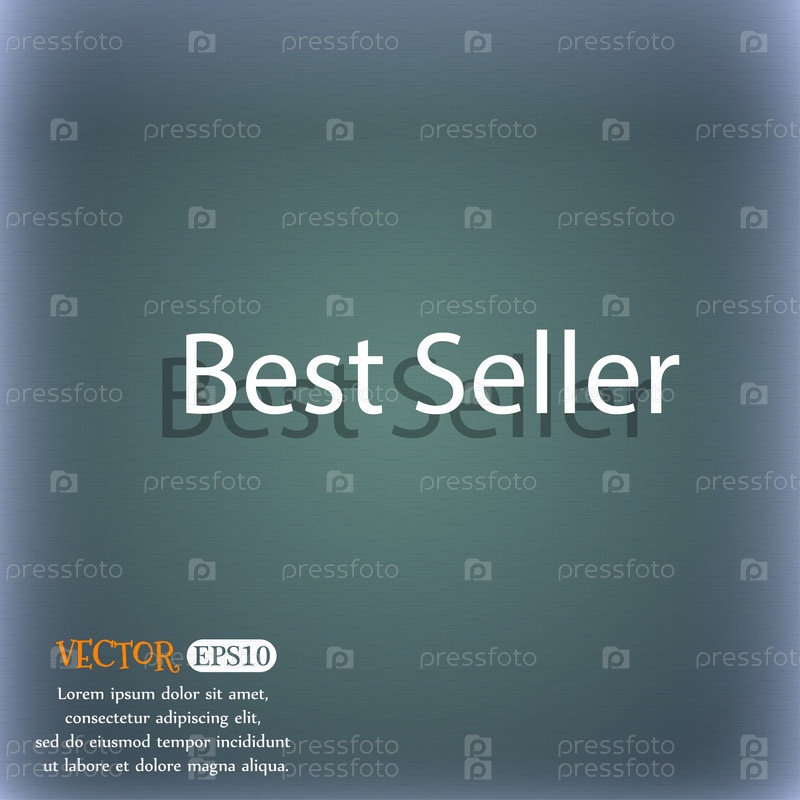 Наиболее продаваемый знак значок. Бестселлер - символ премии. На синем зеленый абстрактный фон с тенью и пространством для вашего текста. Вектор