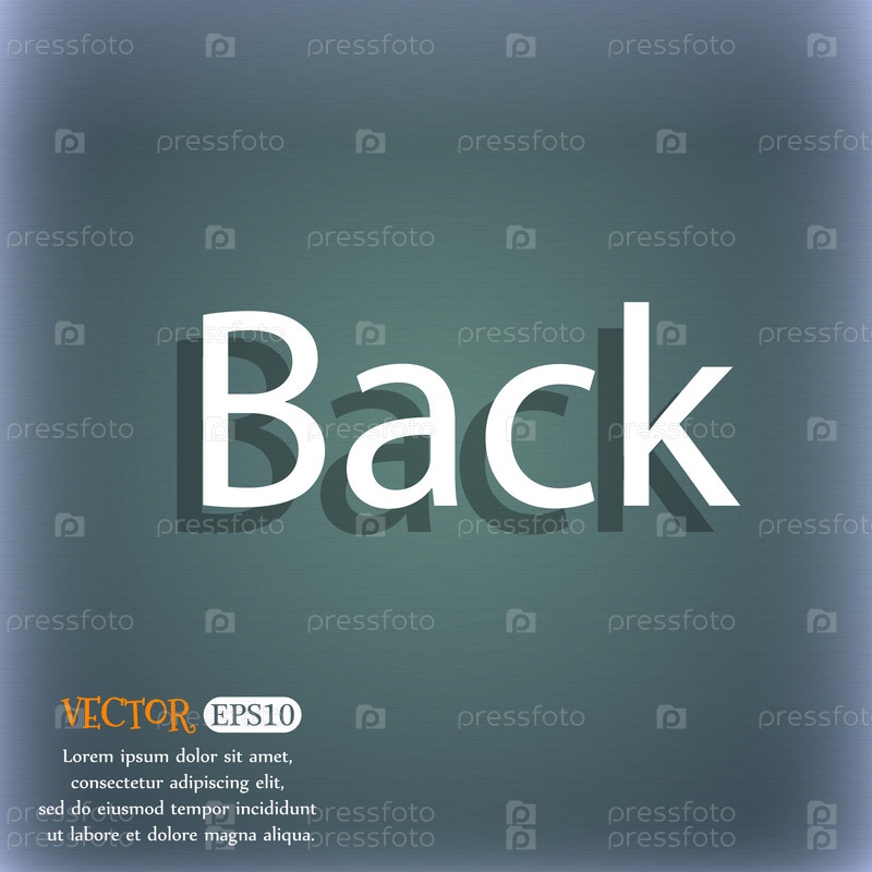 Иконка Стрелка знак. Кнопка "назад". Символ навигации. На сине зеленый абстрактный фон с тенью и пространства для вашего текста. Вектор