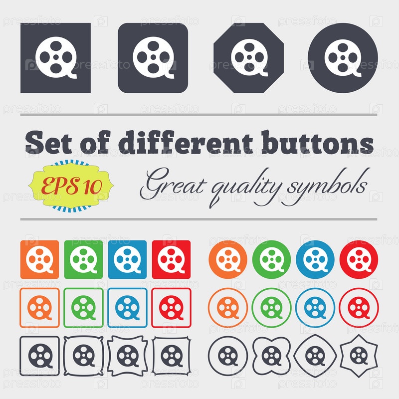 Значок видео знак. символ кадра. Большой набор красочных, разнообразных, высококачественных кнопок. Вектор