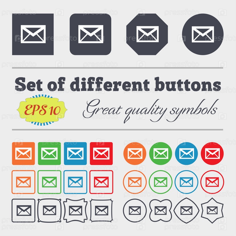 Значок «Почта». Символ конверта. Сообщение знак. кнопка навигации. Большой набор красочных, разнообразных, высококачественных кнопок. Вектор