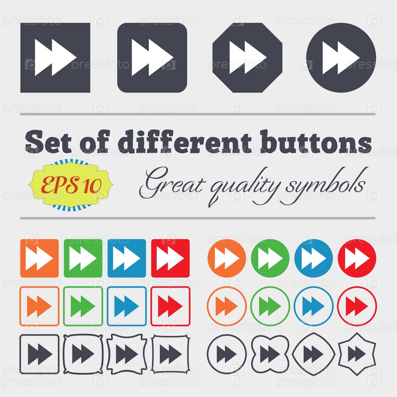 Значок мультимедийного знака. Символ навигации игрока. Большой набор красочных, разнообразных, высококачественных кнопок. Вектор