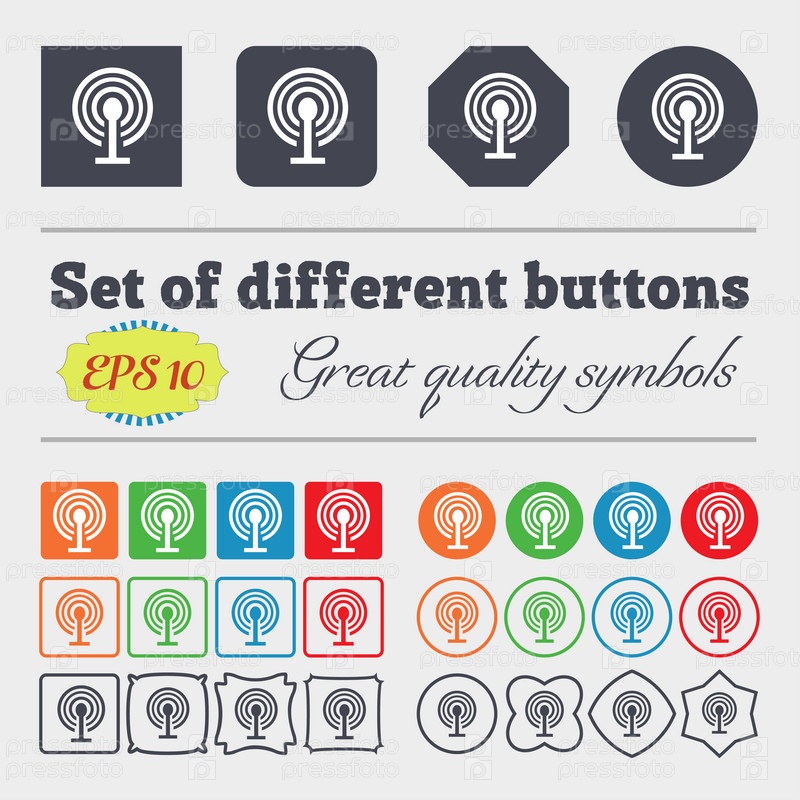 Знак Wi-Fi. Символ Wi-fi. Беспроводная сеть значок зоны. Большой набор красочных, разнообразных, высококачественных кнопок. Вектор