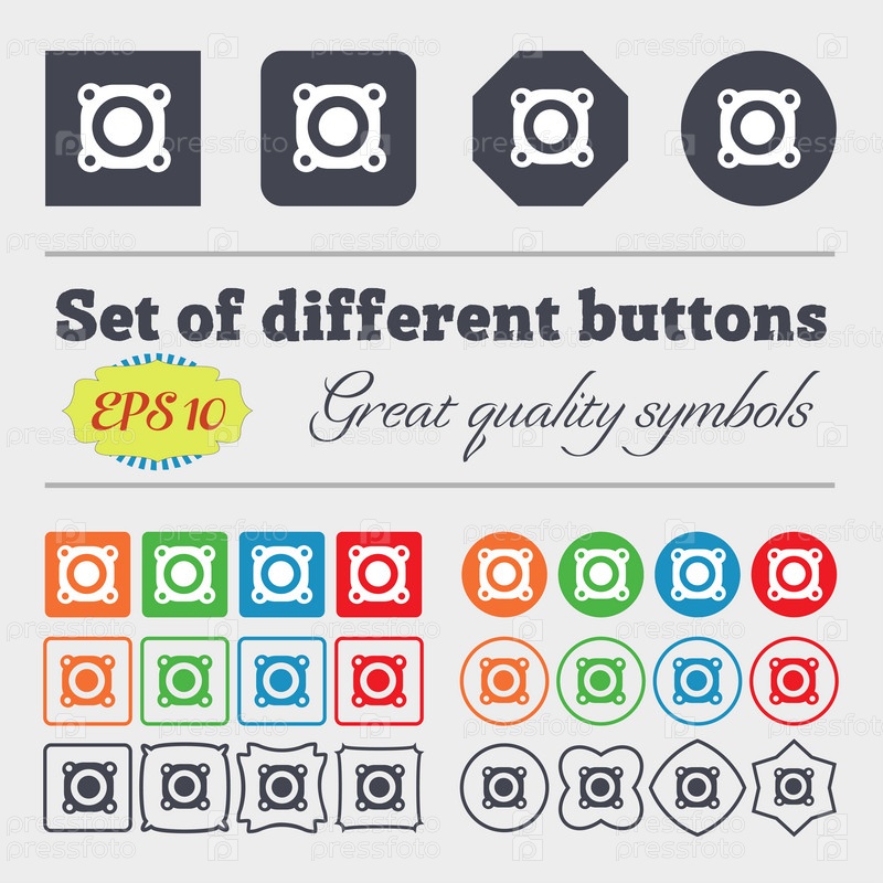 Значок знак громкости динамика. Символ звука. Большой набор красочных, разнообразных, высококачественных кнопок. Вектор