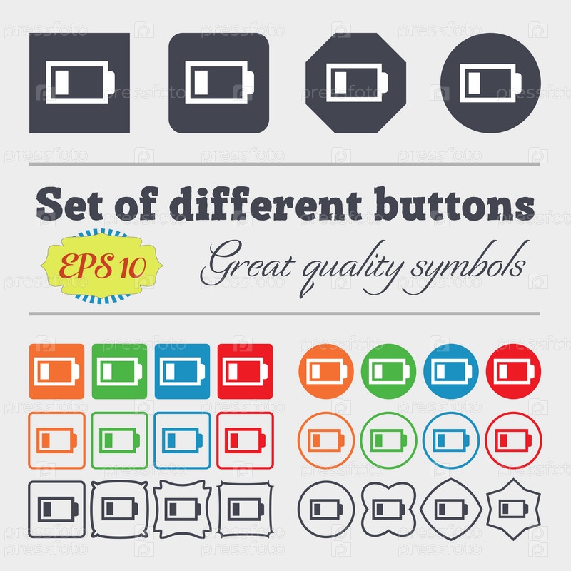 Значок батареи низкий уровень входа. Символ электроэнергии. Большой набор красочных, разнообразных, высококачественных кнопок. Вектор