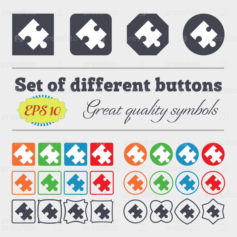 Логическая часть значок знак. Большой набор красочных, разнообразных, высококачественных кнопок. Вектор