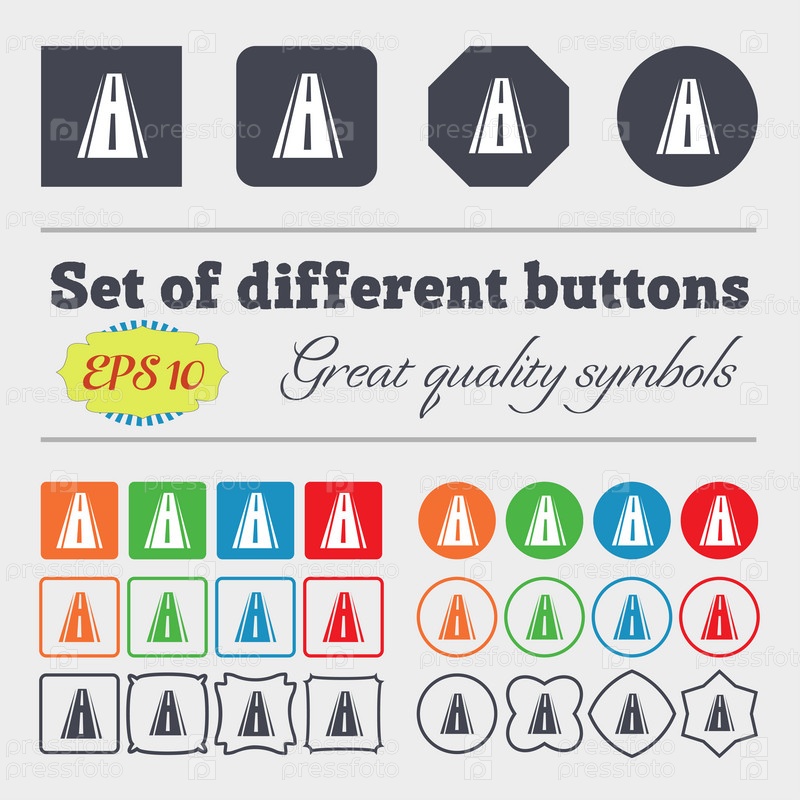 Дорожный знак значок. Большой набор красочных, разнообразных, высококачественных кнопок. Вектор