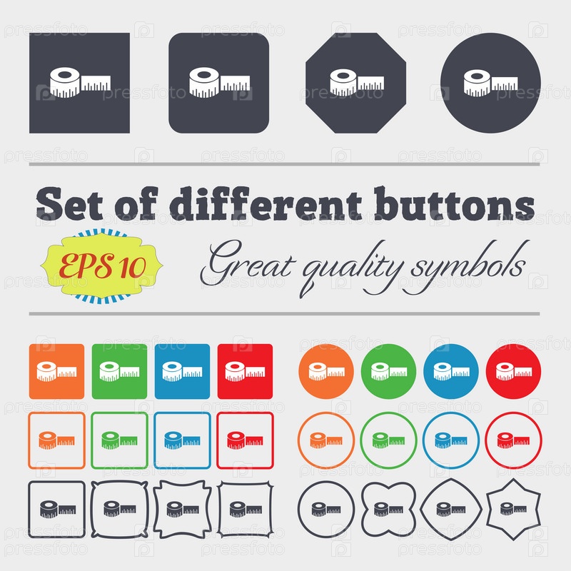Рулетка строительство значок знак. Большой набор красочных, разнообразных, высококачественных кнопок. Вектор