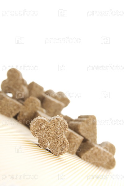 Тростниковый сахар в форме различных фигурок на белом фоне