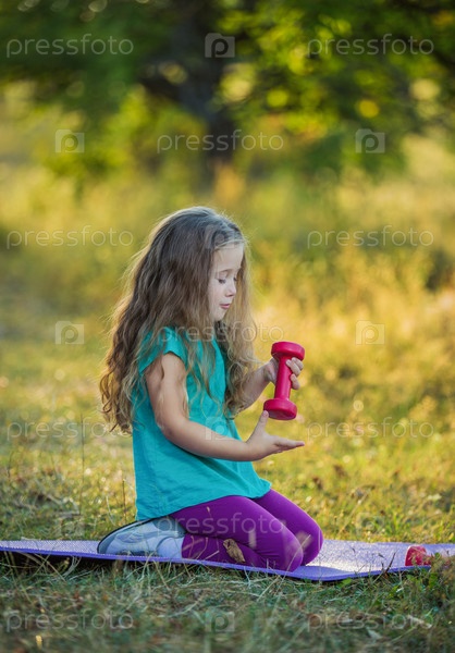 Девочка с гантелей