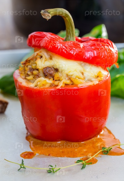 Фаршированные перцы с мясным соусом и сыром, запеченный