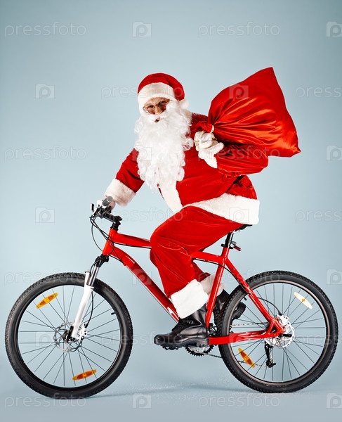 Счастливый Санта на велосипеде