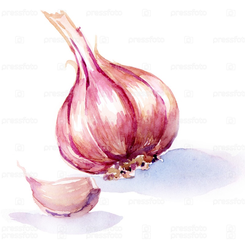 Чеснок. Акварельная живопись