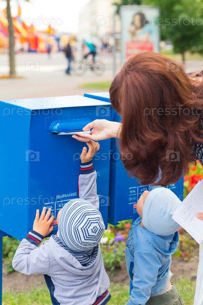 Женщина кладет письма в почтовый ящик