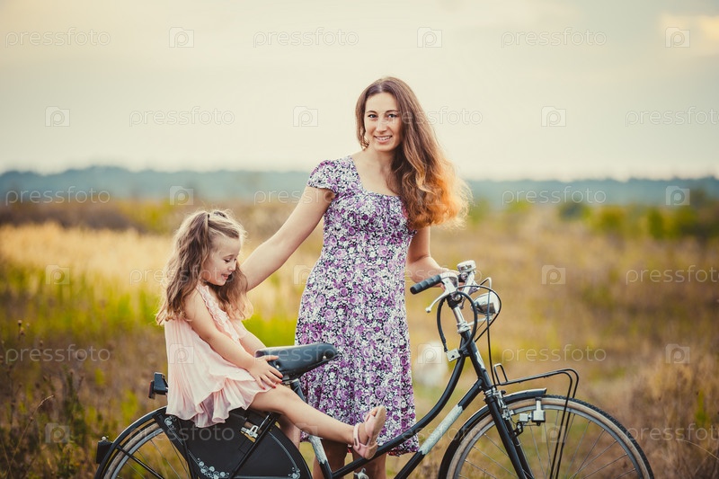 Мать с дочкой на велосипеде