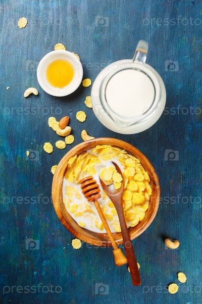 Кукурузные хлопья с молоком и медом