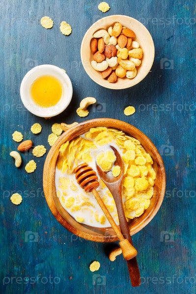 Здоровый завтрак. Кукурузные хлопья с медом и орехами