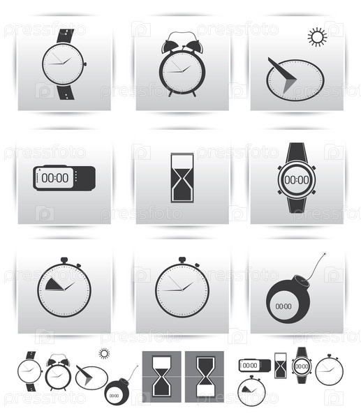 Векторный набор иконок. Время и часы