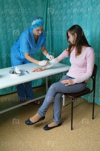 Врач забинтовывает руку пациентки