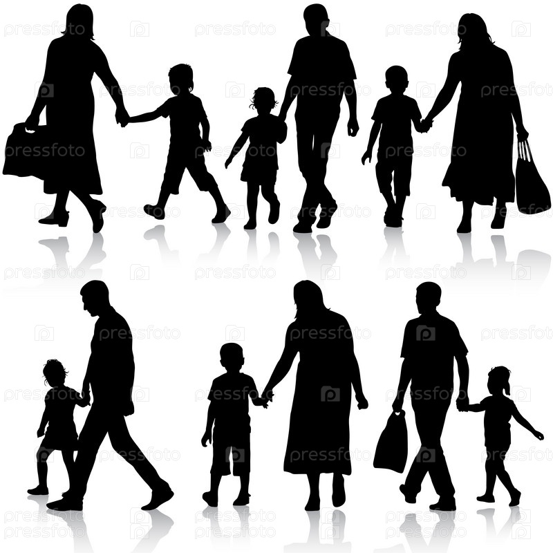 Черные силуэты семьи на белом фоне