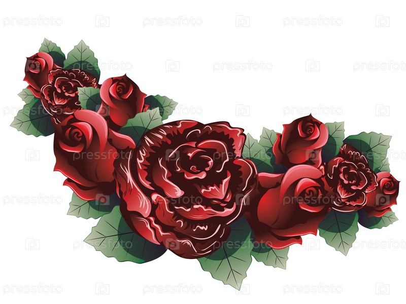 Красные розы с листьями