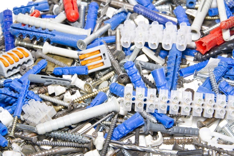 Болты, шурупы и дюбели крупным планом