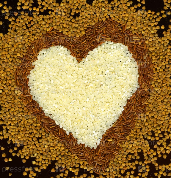 Вегетарианская концепция - сердце из гречки и риса