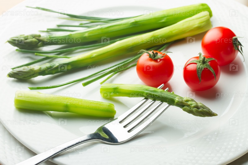 Спаржа с помидорами
