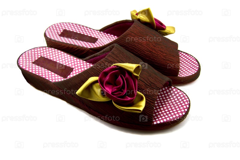 Женские шлепанцы на белом фоне
