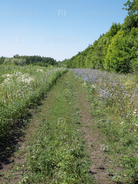 Грунтовая дорога в поле, летний солнечный день