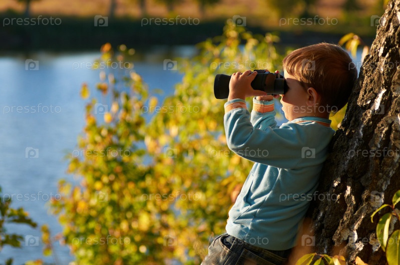 Маленький мальчик смотрит в бинокль