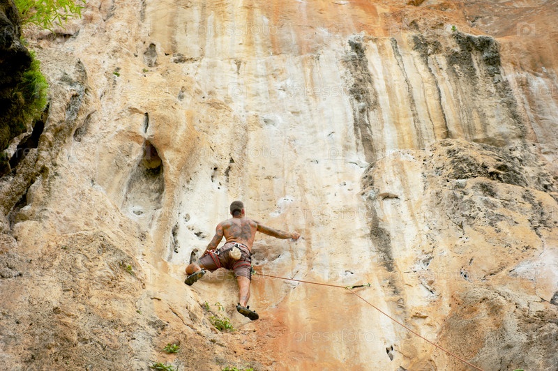 Скалолаз во время подъема по скале