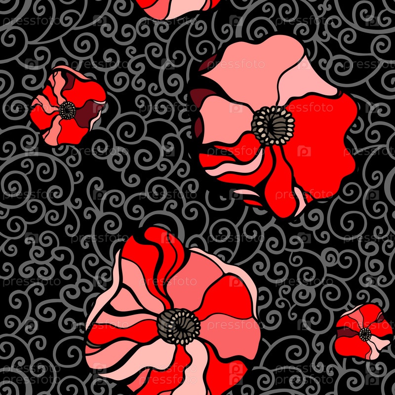 Красные маки на сером фоне. Бесшовный фон