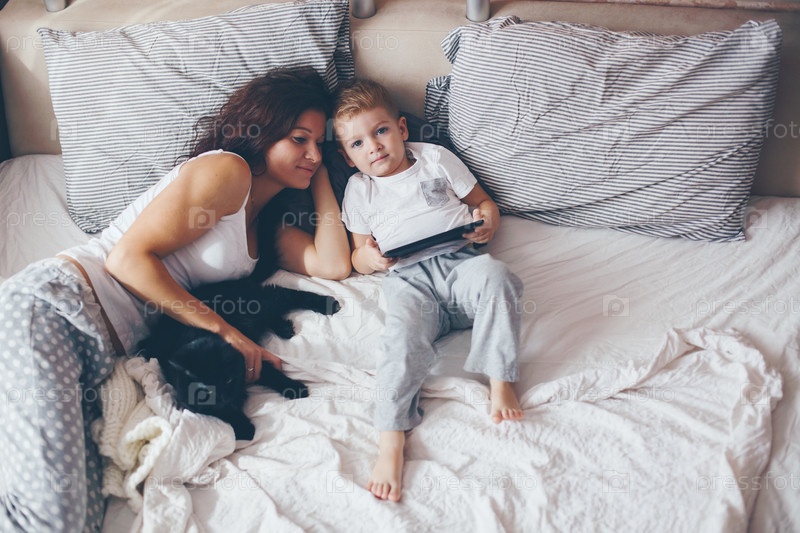 Мама, расслабляющий с сыном
