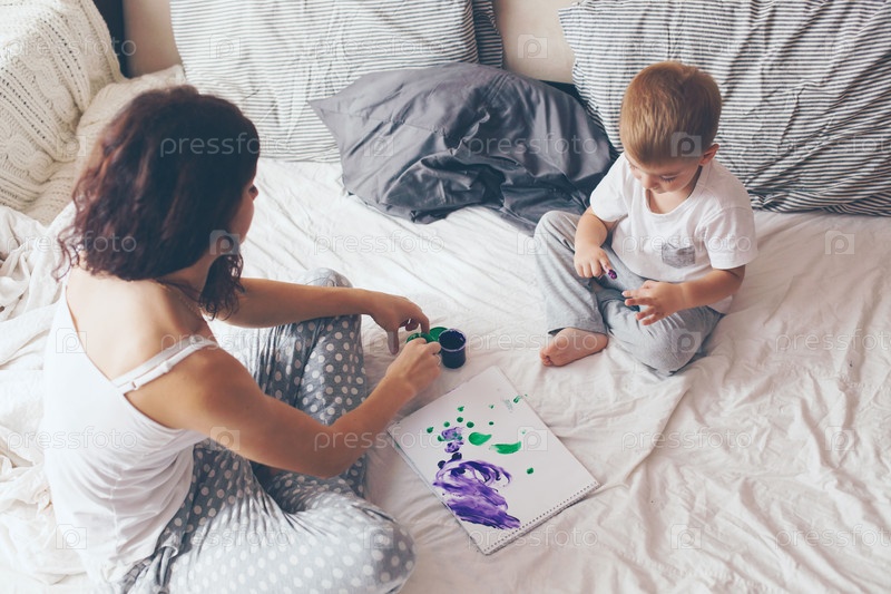 Мама, расслабляющий с сыном