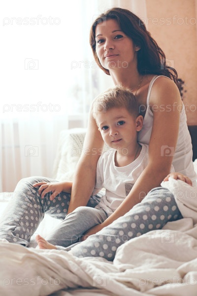 Мама, расслабляющий с сыном