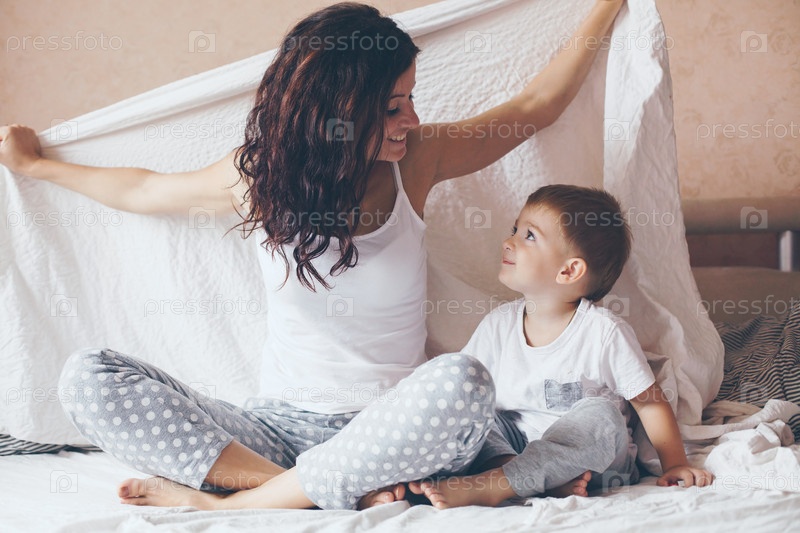 Мама, расслабляющий с сыном