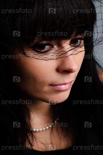Студийный портрет элегантной брюнетки в вуалетке