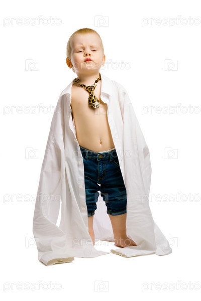 Мальчик в большой рубашке и галстуке
