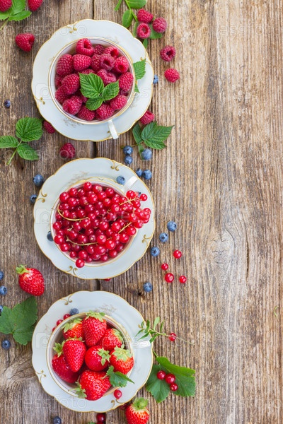 Свежая малина, красная смородина и клубника