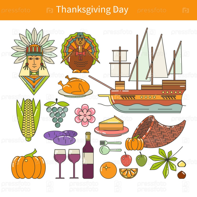 Плоские иконки на день благодарения