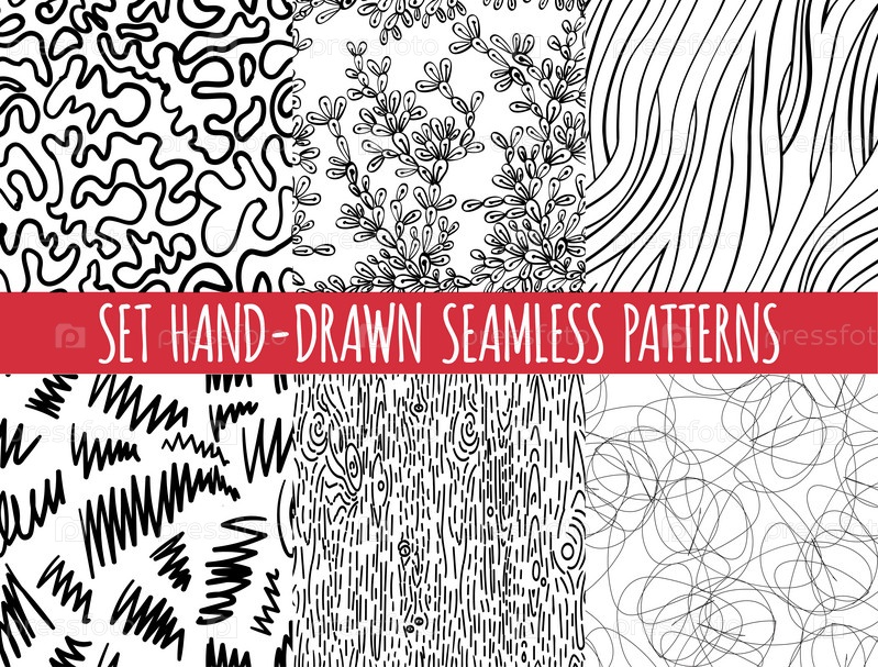Набор абстрактные рисованные бесшовные фоны