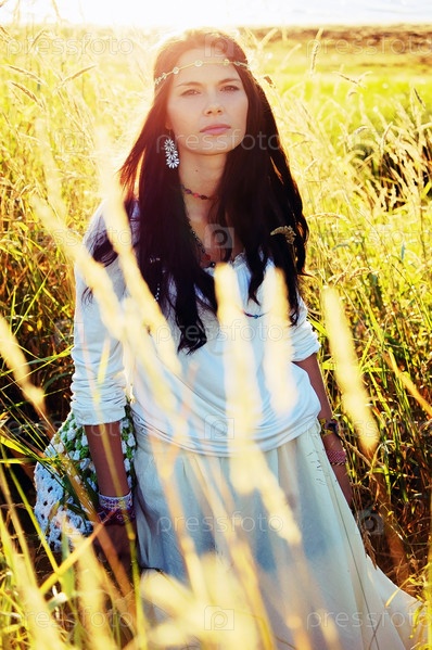 Красивая девушка хиппи в лучах солнца